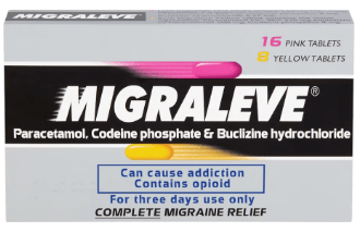 Migraleve (12+) comes in pink and yellow tablets.
